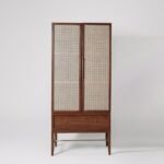 Hand-Woven Cane Inlay: Features two tall doors with breathable cane panels that introduce organic texture and visual lightness.