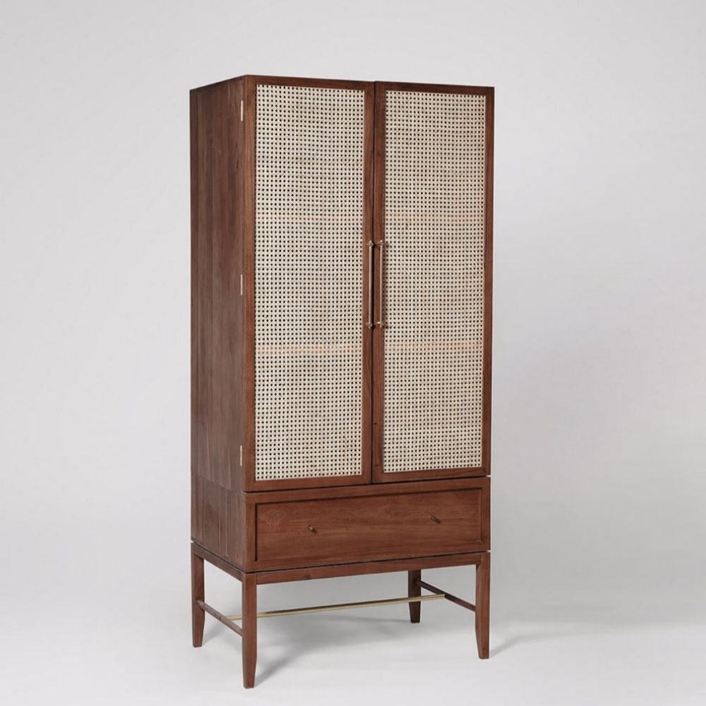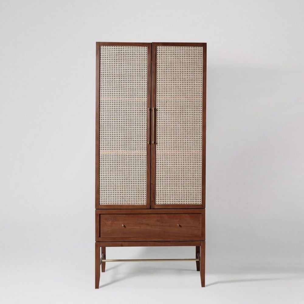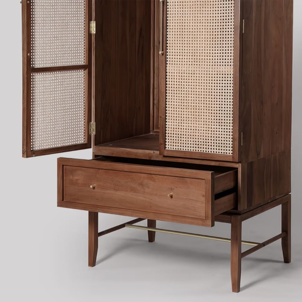 Solid Acacia Wardrobe with 2 Cane Doors – Veda Bloom