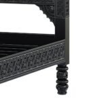 The visual appeal of this piece lies in the deep expression of its natural materials. The solid rosewood construction features an intricate hand-carved pattern preserved to allow the authentic timber character to shine through the bold black finish.
