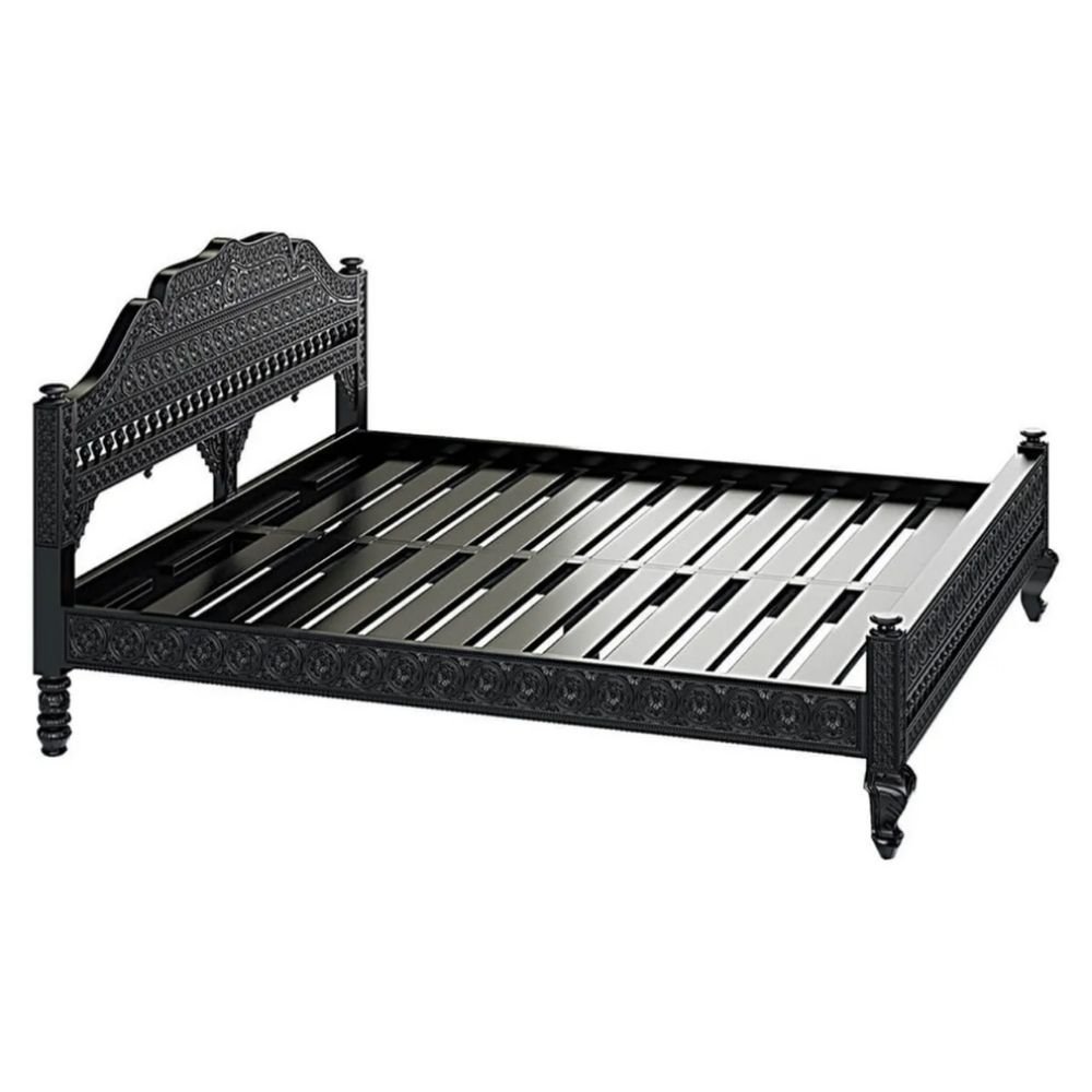 Home Bedroom Beds Solid Rosewood Bed with Ornate Heritage Carvings – Jaxon Onyx