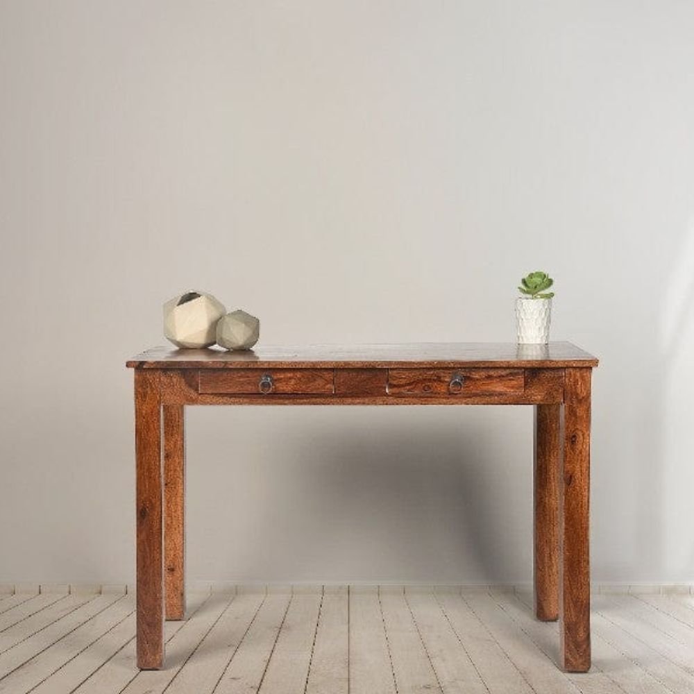 Solid Sheesham Wood Study Desk with 2 Storage Drawers – Marbled Vertex