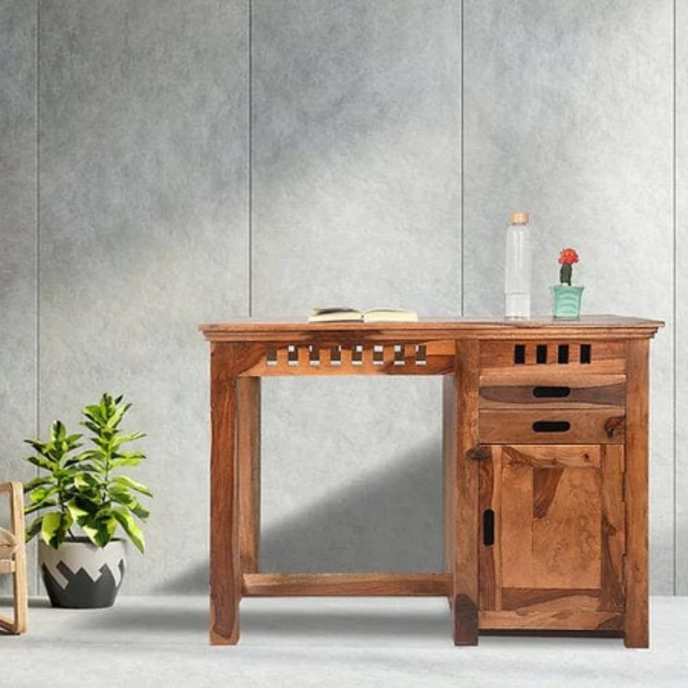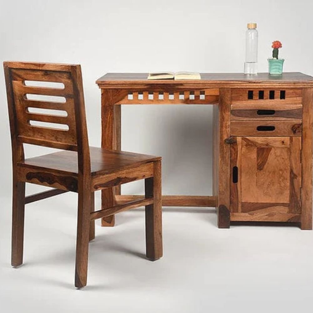 Solid Sheesham Wood Study Desk with 2 Storage Drawers – Ethereal Spire