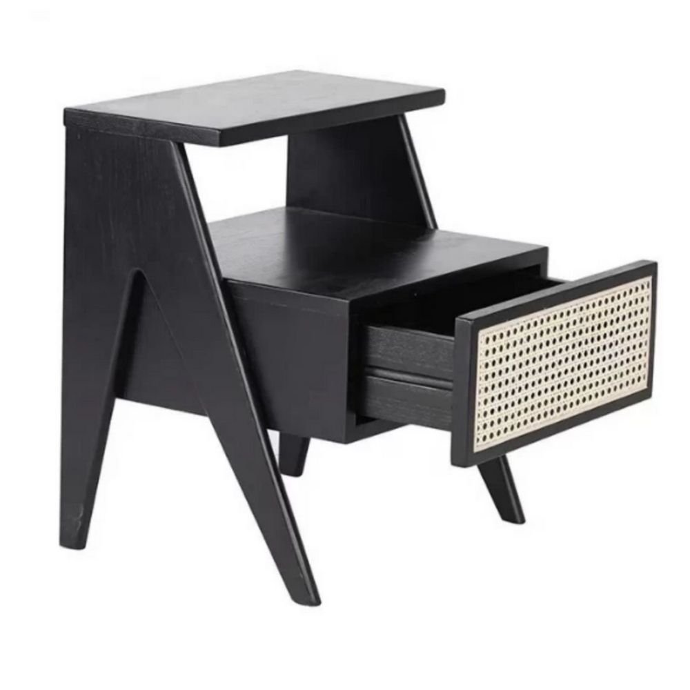 Solid Wood 1 Drawer Nightstand in Black – Raya Bloom