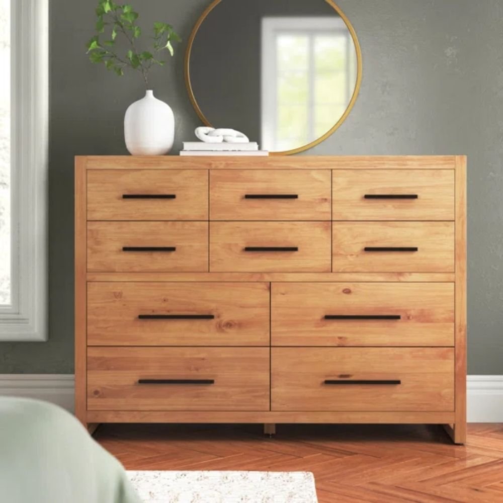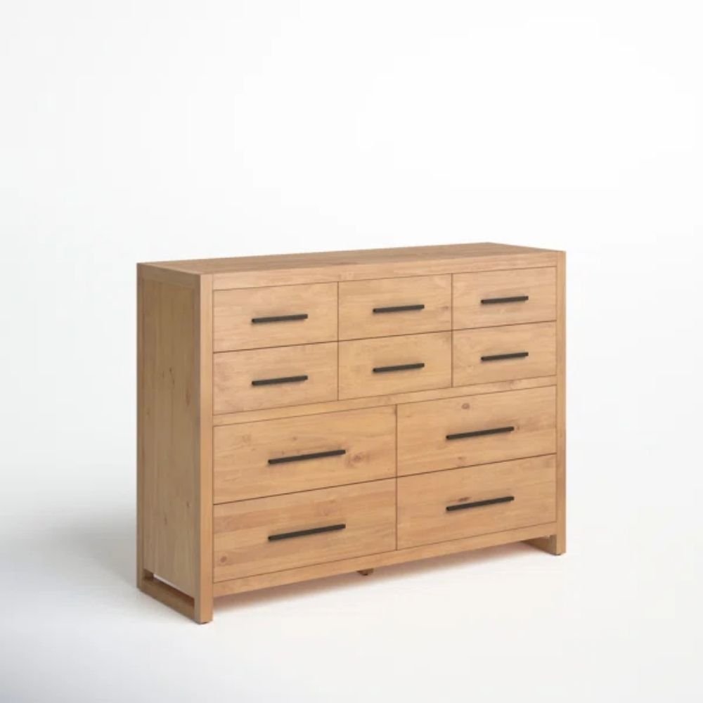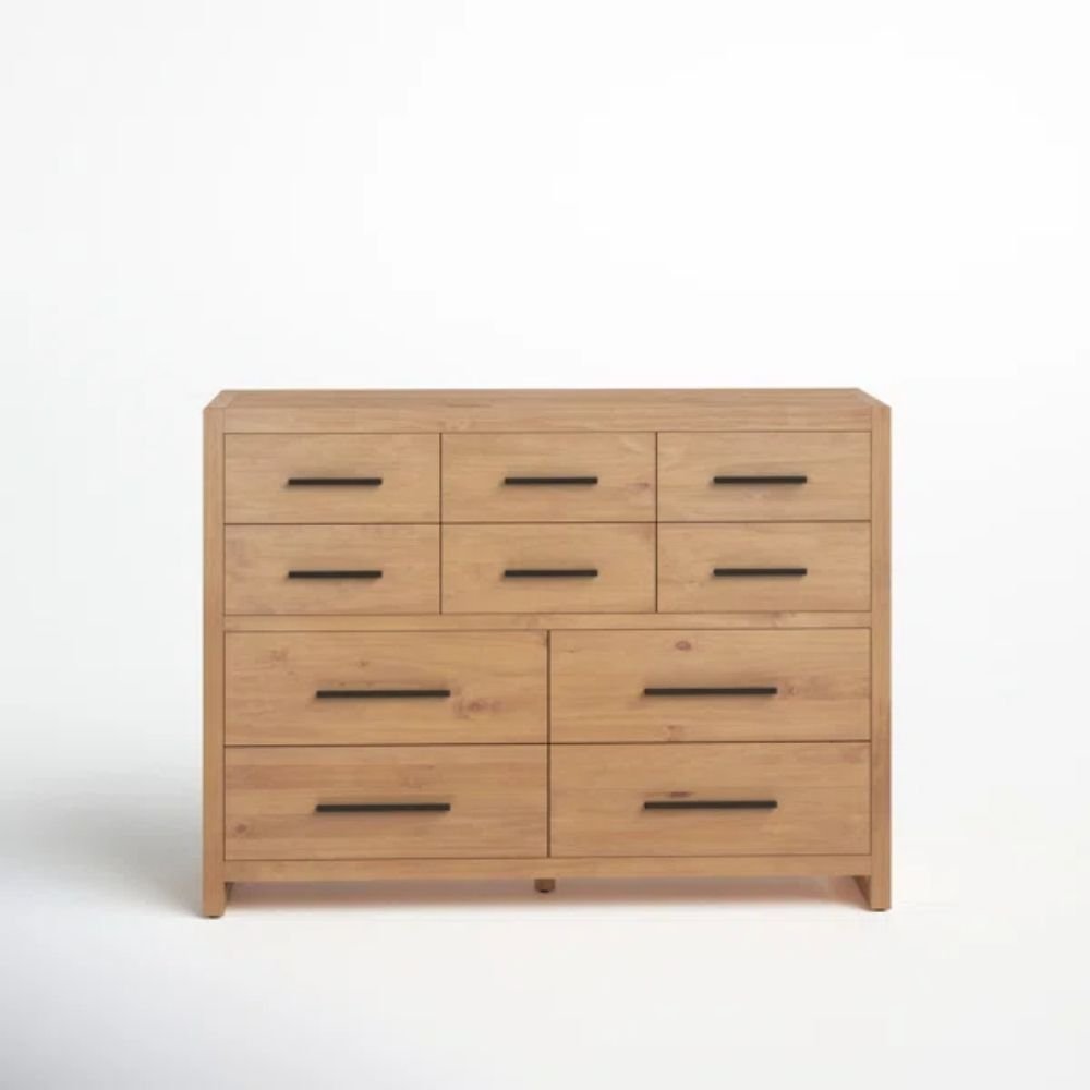 Solid Wood 10 Drawer Chest in Natural Brown – Alpine Vista