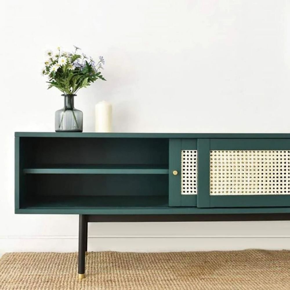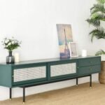 The height of 28 inches is ideal for creating a layered vignette with sculptural vases and low-profile tech accessories. By introducing the olive green tones of this TV unit, you add a layer of sophistication that feels both grounded and airy. Whether styled with minimalist ceramics or lush greenery, the impact of the wood texture creates an inviting atmosphere that reflects a high standard of living and a keen eye for contemporary design. The cane detailing allows for dynamic light play, making the piece a versatile asset as your personal style evolves over time.