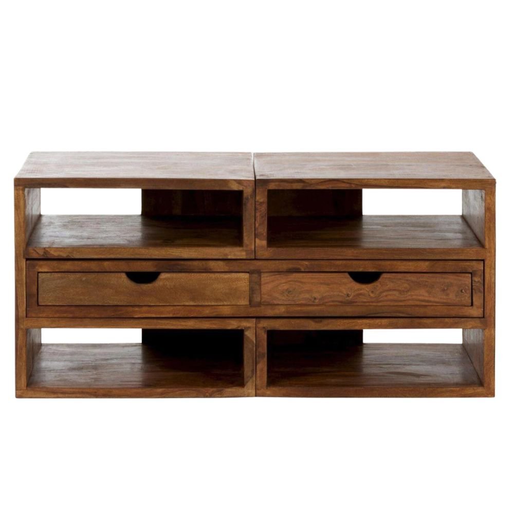 Home Living room TV Cabinets Solid Wood TV unit with 2 Drawers – Slate Zenith