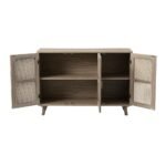 Every joint and angle of this cabinet is reinforced to provide a seamless look that highlights the natural durability of the timber and the strength of the woven cane panels. The substantial weight of the solid wood base ensures that the unit stays securely in place, even in high-traffic areas of the home. By prioritizing a “storage-first” approach, the design focuses on clean lines and a functional footprint, making this cabinet an essential element for organized and sophisticated modern living spaces. The internal framing is built to handle significant weight, allowing for a diverse range of decorative configurations while maintaining its perfectly level and sleek architectural profile.