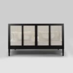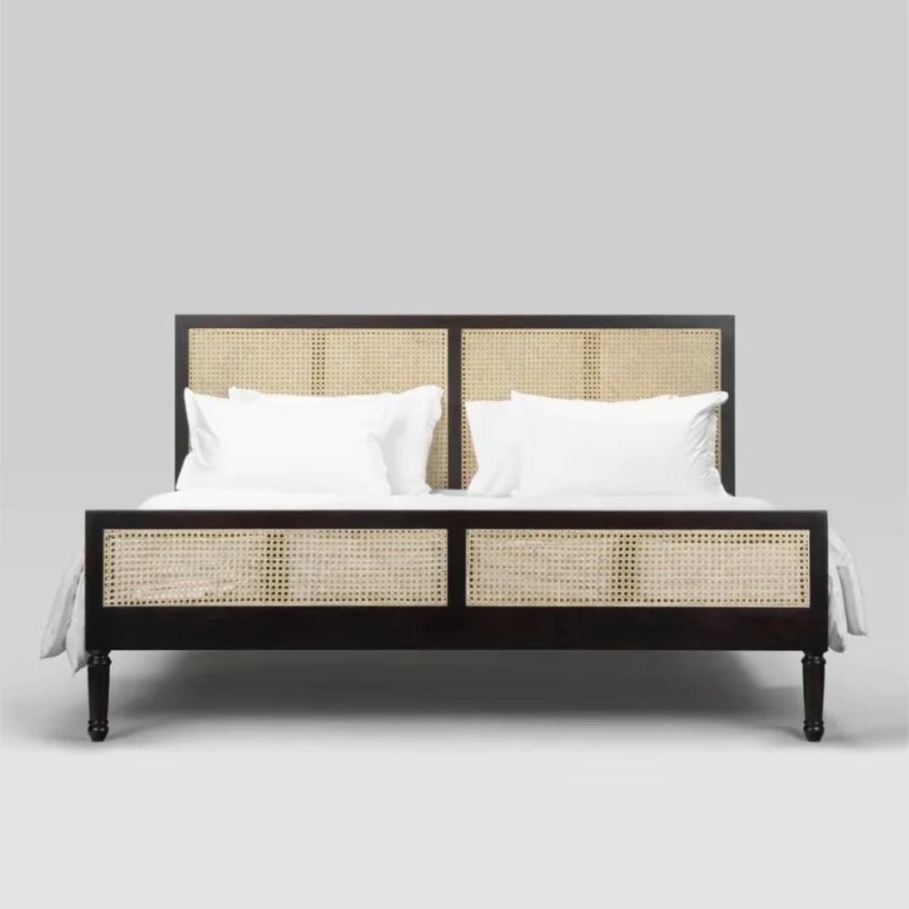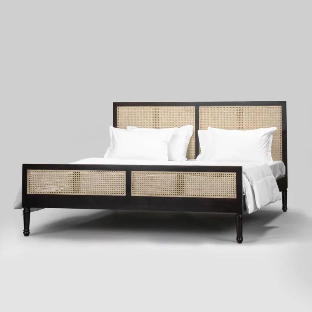 Solid Wood Bed with 4 Cane Panels – Kyra Noir