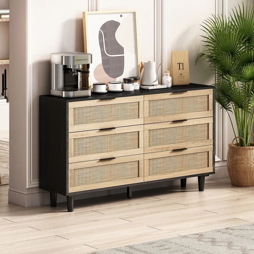 Solid Wood Chest of Drawers with 6 Natural Cane Fronts – Onyx Crest