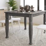 Home Dining & Kitchen Dining tables Classic Dining Table – Solid Wood Antique Gray Finish