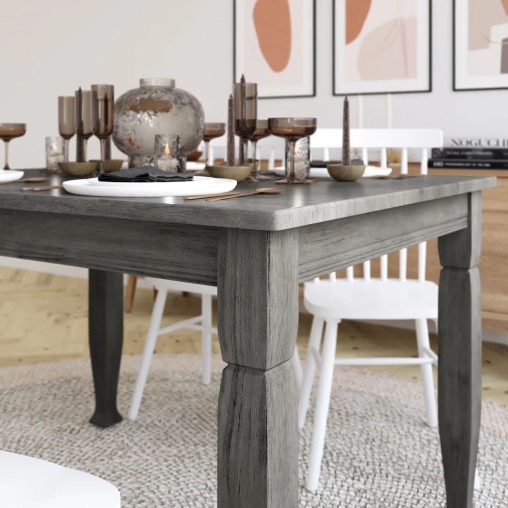 This dining table enhances interiors by introducing a sense of tradition and stability without feeling heavy or dated. Its antique gray finish softens the visual weight of solid wood, allowing it to blend seamlessly into both classic and lightly updated interiors. The table works especially well in dining rooms that favor neutral palettes, textured fabrics, and layered décor.