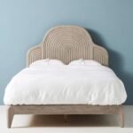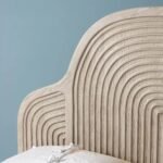 • Sculptural Arched Headboard: Features deep, concentric hand-carved grooves that create a stunning Art Deco inspired silhouette.