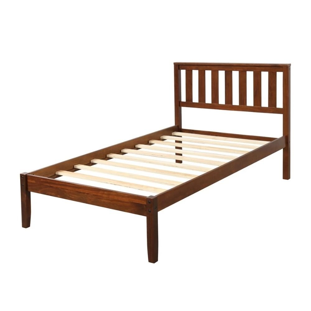 Bedroom Bed in Solid Wood with Slat Support – Walnut