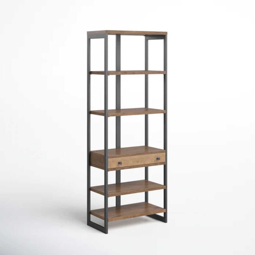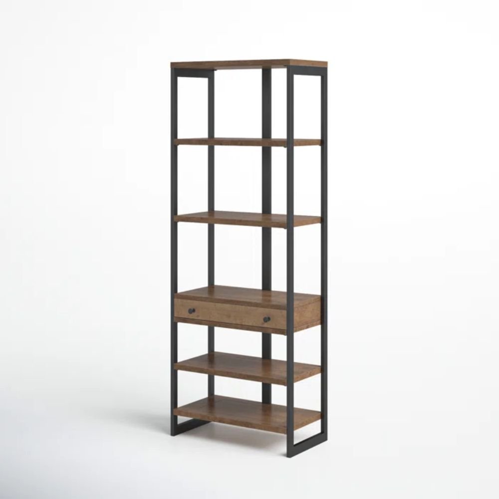 Layer books with a mix of vertical and horizontal placement to create visual rhythm, and introduce a limited number of sculptural objects for contrast. Neutral textiles and soft lighting complement the wood tone, while darker accents echo the metal frame for cohesion. For a coordinated setup, pair this piece with Modera Furnish Study tables to maintain consistency in material and scale when placing this bookshelf in a working area. For broader inspiration rooted in industrial-modern interiors and proportion-led design, features from Architectural Digest reflect similar principles of contrast, clarity, and timeless appeal.