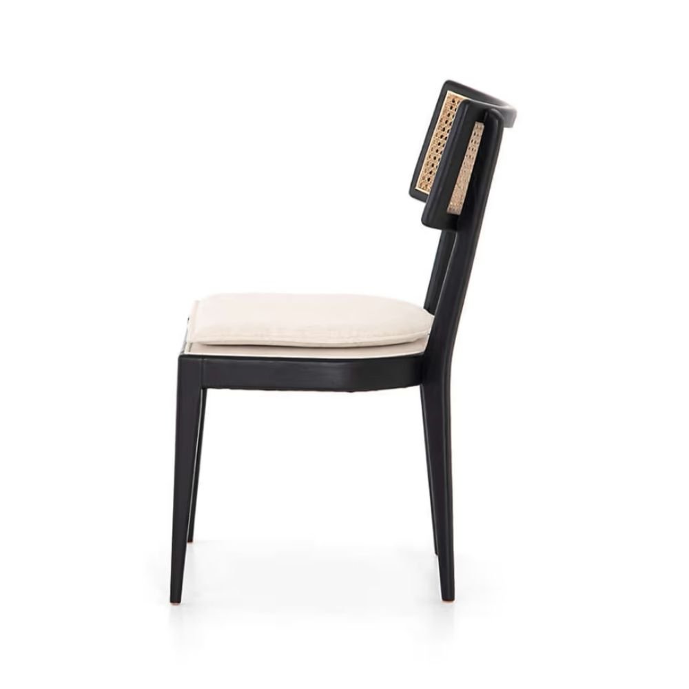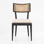 Hand-Woven Cane Back: Features a breathable natural rattan panel that provides organic texture and ergonomic support.
