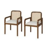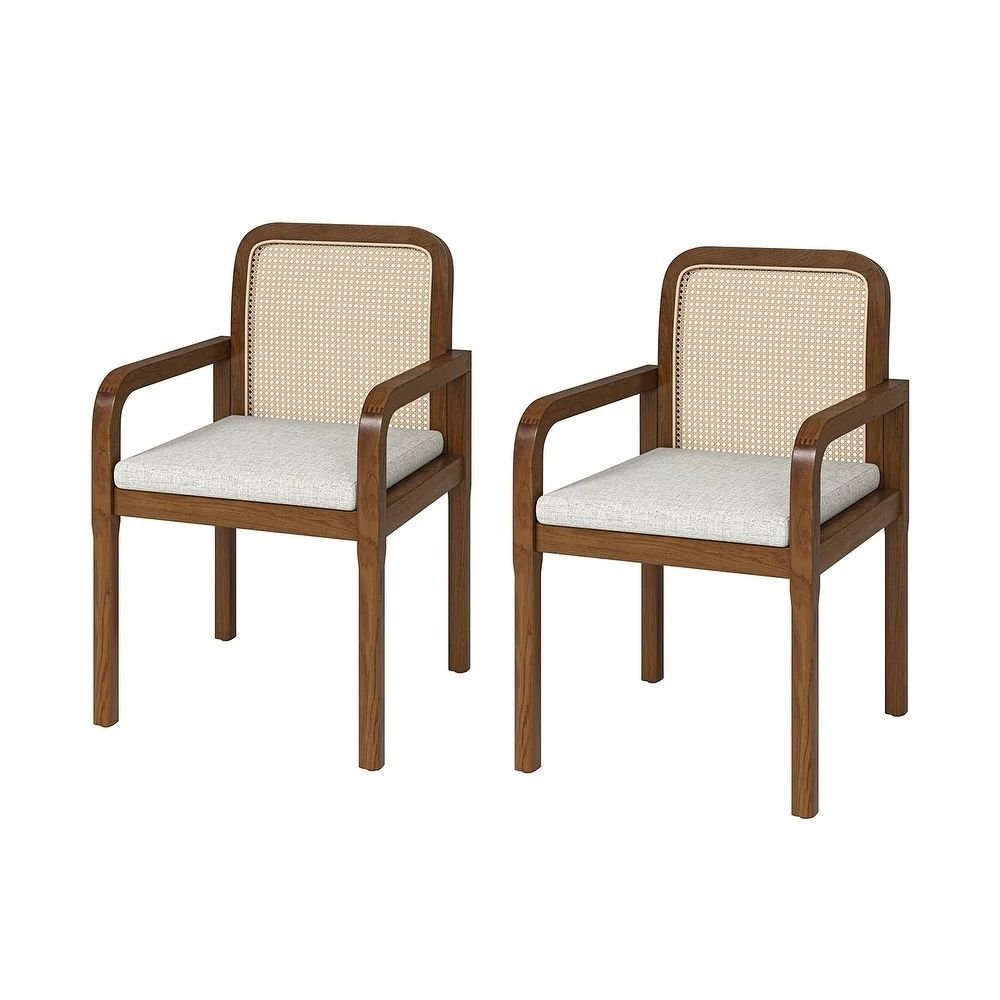 Elegant Dining Chairs – Solid Wood Cane Armchair Set