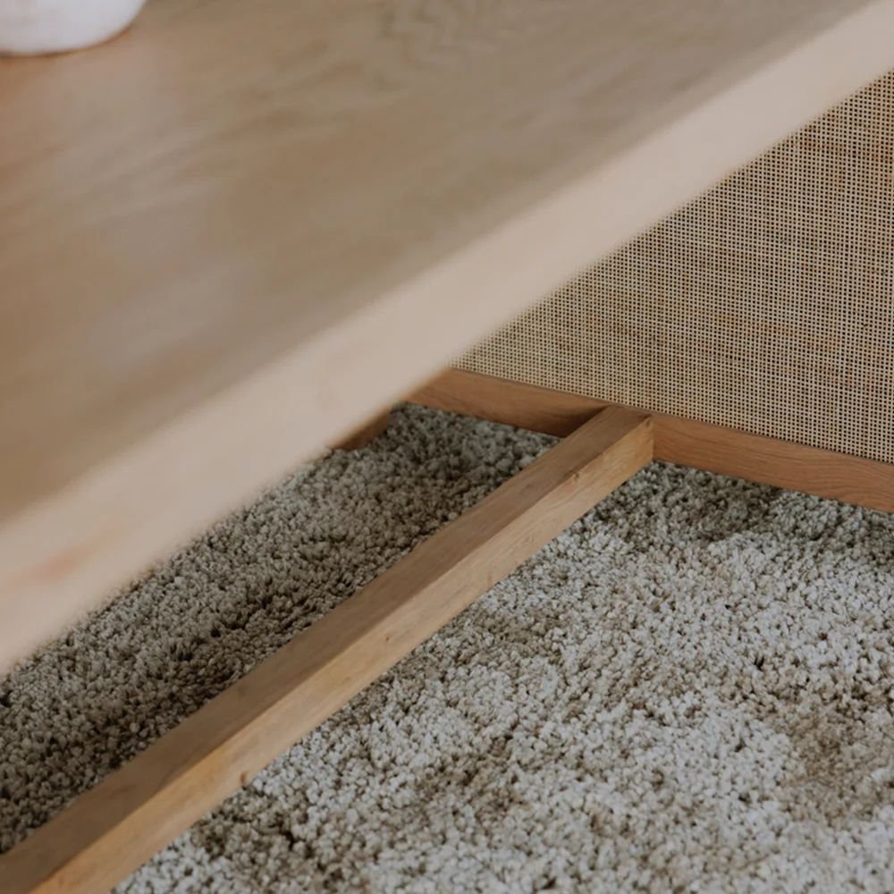 Intricate Cane Detail: Features hand-woven cane panels in the trestle base for a touch of organic, airy texture.