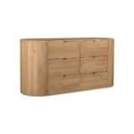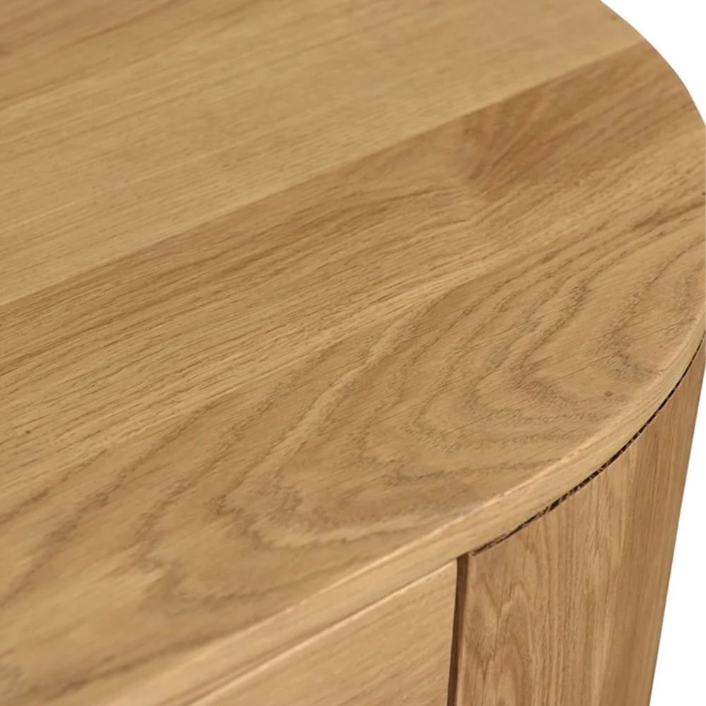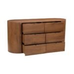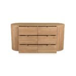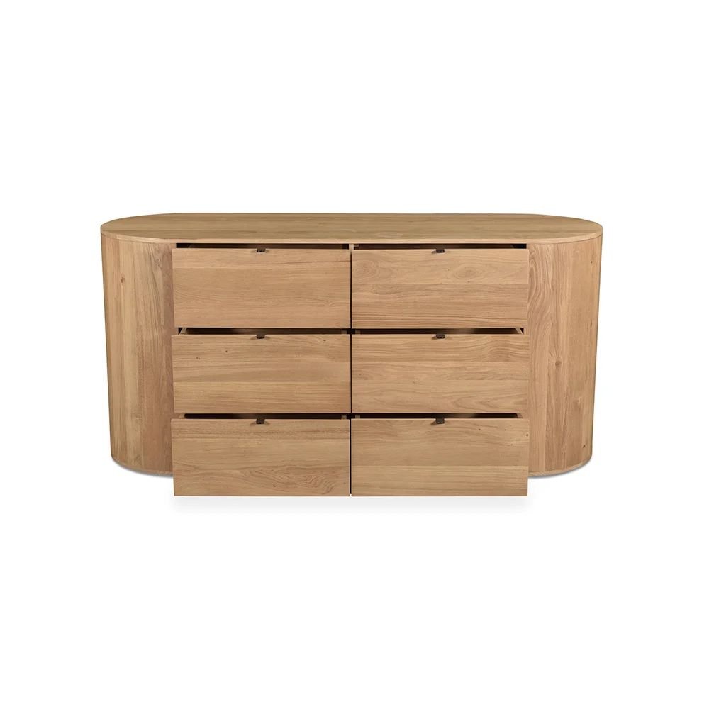 The finish depth is achieved through a multi-step staining process that highlights the 3D texture of the wood fibers. This creates a tactile experience where the material expression feels warm and organic to the touch despite its sturdy build. Light dances across the surface of the chest of drawers, revealing subtle variations in the wood grain that ensure no two pieces are exactly alike. It is this dedication to natural detail that elevates the product from simple furniture to a work of functional art. The signature curved gable ends create a continuous, flowing line that emphasizes the seamless luxury.