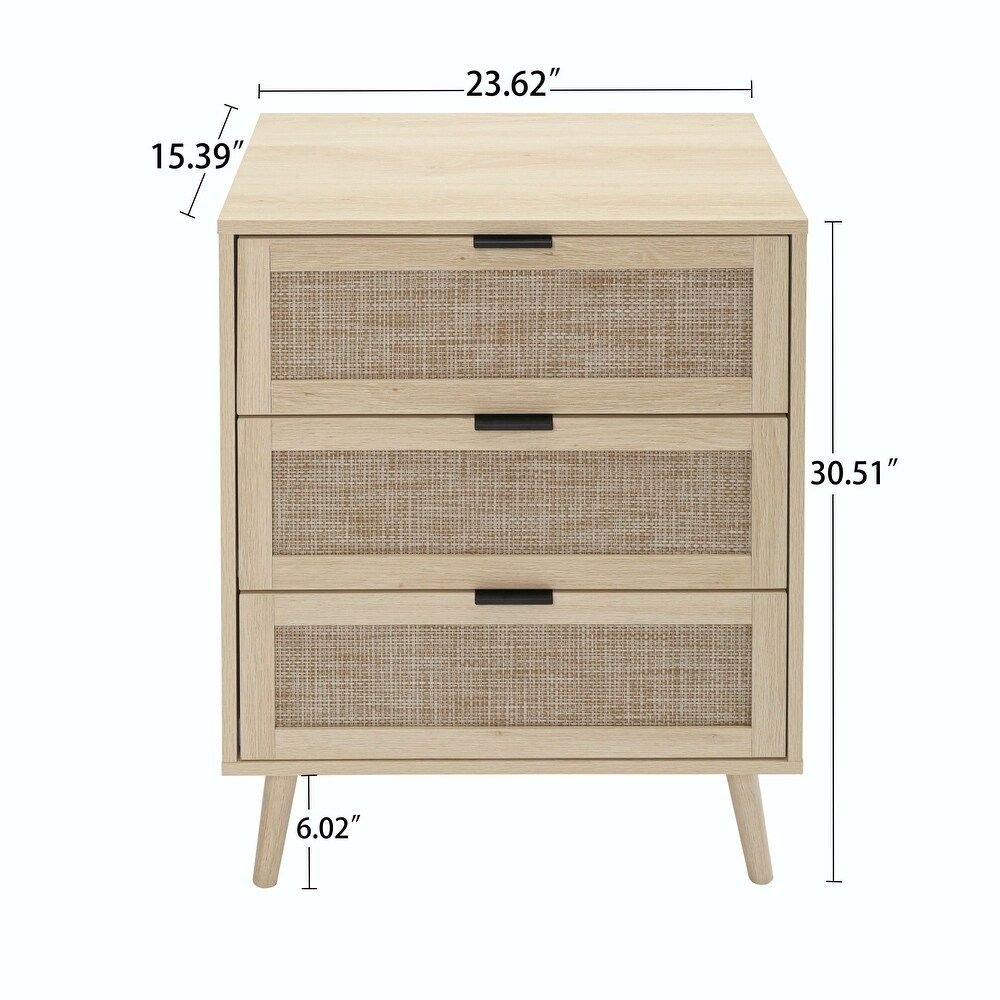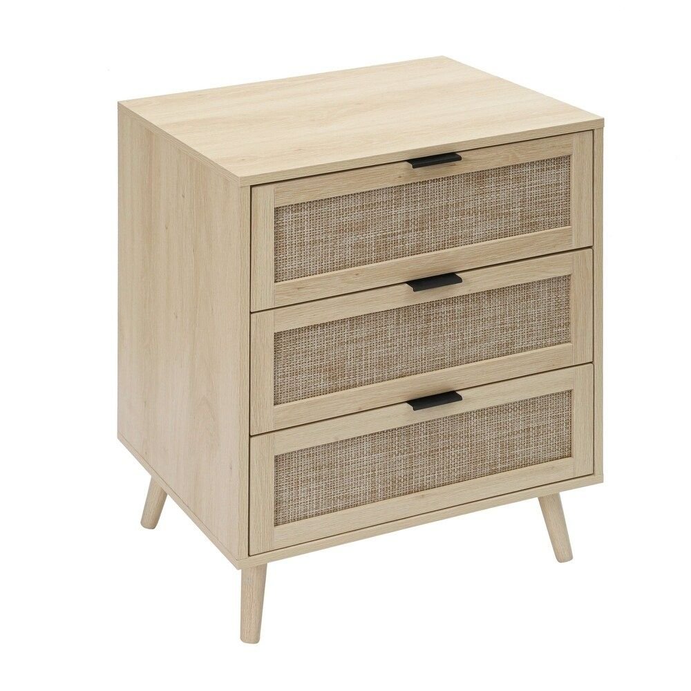 Hand-Woven Cane: Features three intricate cane-fronted drawers that provide breathable texture and visual lightness.