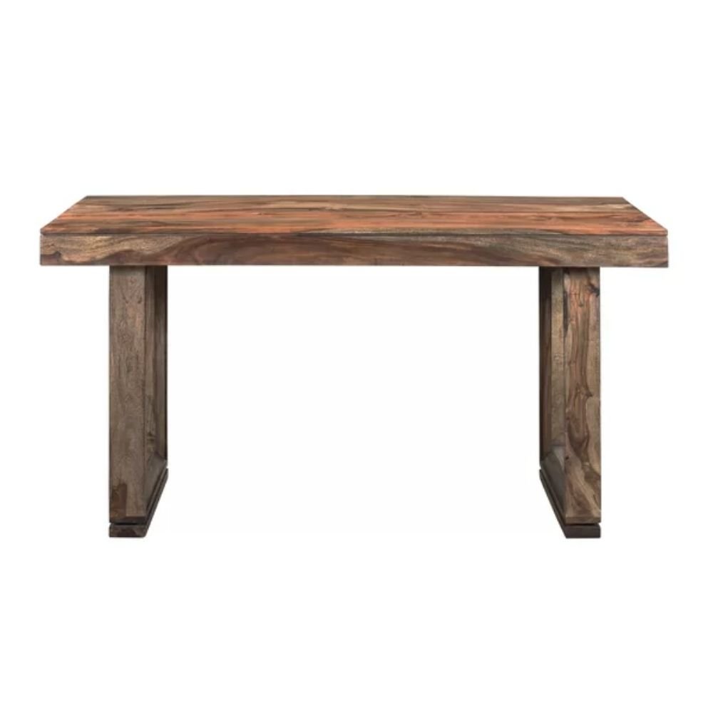 The finish depth is achieved through a multi-step staining process that highlights the 3D texture of the wood fibers. This creates a tactile experience where the material expression feels warm and organic to the touch despite its sturdy build. Light dances across the surface of the console table, revealing subtle variations in the wood grain that ensure no two pieces are exactly alike. It is this dedication to natural detail that elevates the product from simple furniture to a work of functional art. The signature bridge-style design creates a continuous, flowing line that emphasizes the seamless luxury of the solid wood.
