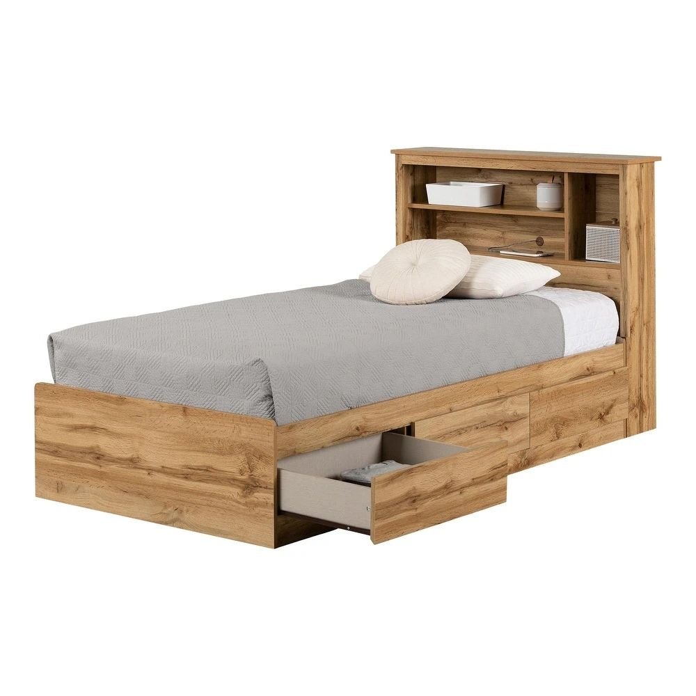 Pair this elevated frame with complementary storage pieces from Modera Furnish Chest of drawers to maintain harmony in scale and finish. Neutral bedding allows the wood grain to remain visually prominent, while subtle textiles introduce softness and balance. Natural daylight enhances surface depth during daytime hours, while warm ambient lighting highlights shelving details in the evening. For broader inspiration rooted in efficient layouts and material-led interiors, features from Architectural Digest reflect similar principles of proportion, clarity, and enduring appeal.