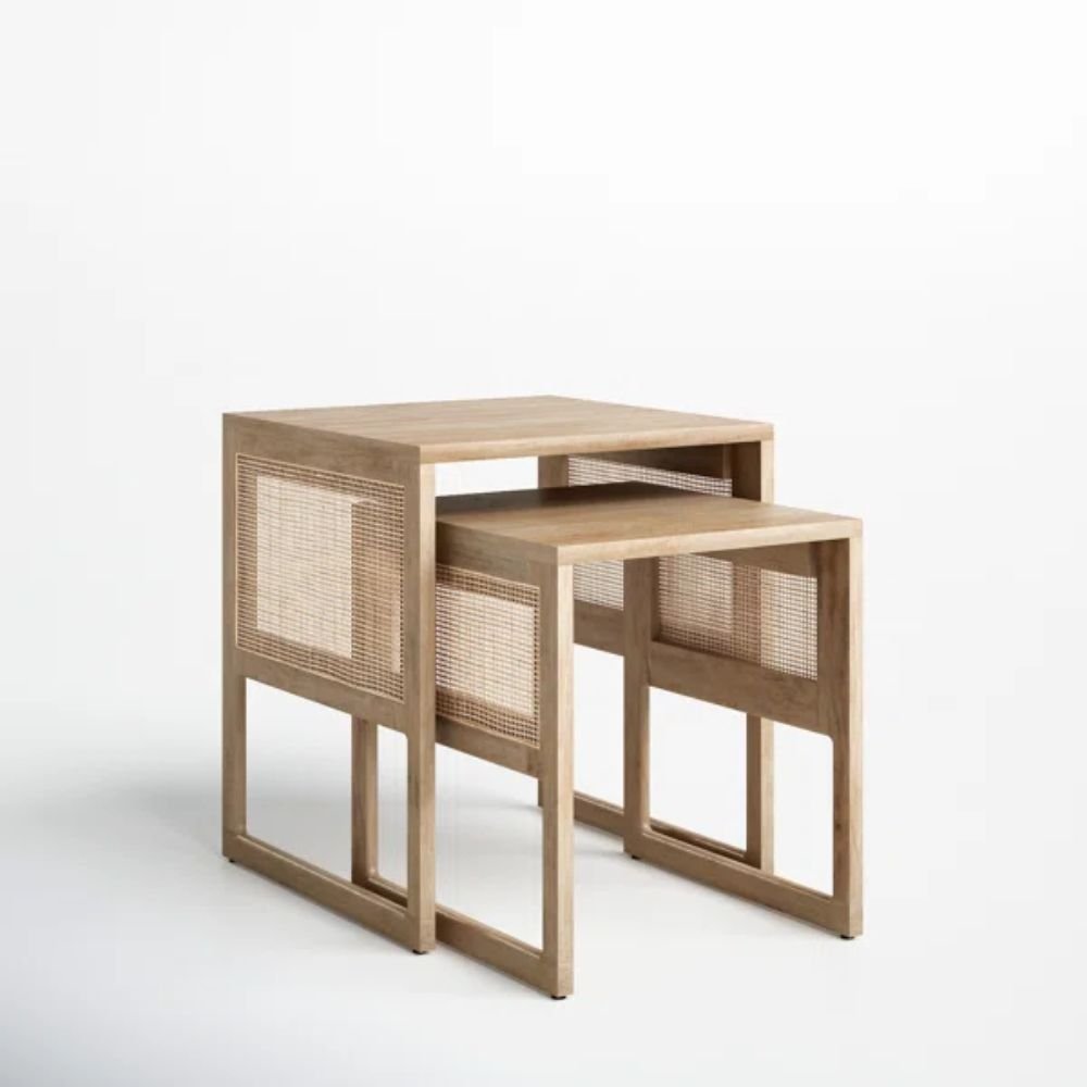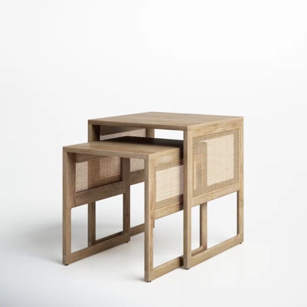 Choosing the right furniture requires an appreciation for both form and durability. This nesting set is meticulously engineered to provide a stable surface while maintaining a slim profile that fits perfectly beside sofas, armchairs, or within contemporary lounges. The light brown tones offer a warm yet commanding presence that complements the woven cane accents, ensuring your solid wood end table remains a timeless addition to your curated furniture collection. Through its geometric frame and premium construction, it provides the perfect stage for high-end styling and personal expression in any modern luxury home setting.