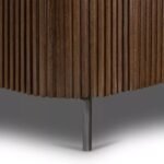 The visual appeal of this piece lies in the deep expression of its natural materials. The solid wood construction features a precision-carved fluted pattern that has been carefully preserved to allow the authentic timber character to shine through.