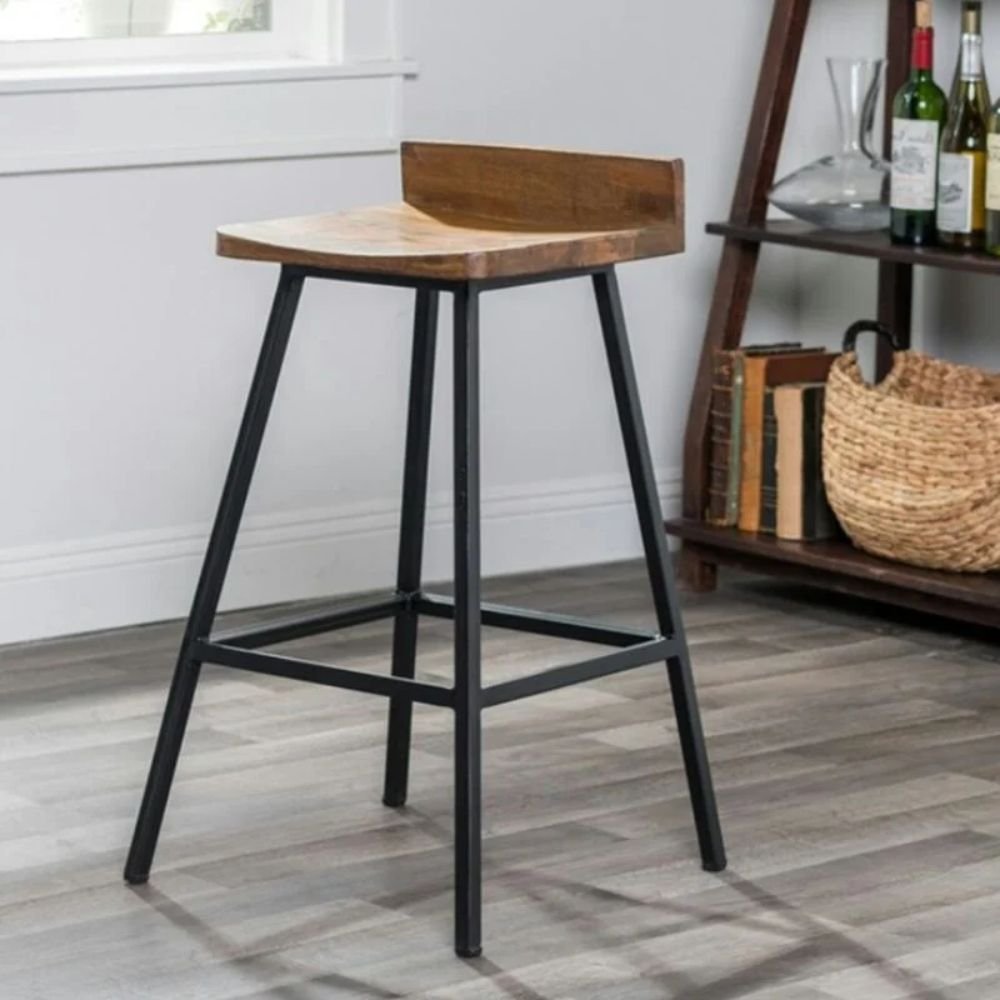 Solid Wood Metal Bar Stool with Low Backrest – Onyx Ridge