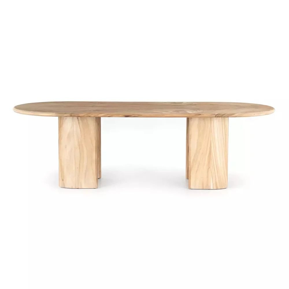 The height of 30 inches is ideal for creating a layered vignette with tall floral arrangements and designer dinnerware. By introducing the warm caramel tones of this dining table, you add a layer of sophistication that feels both grounded and airy. Whether styled with minimalist ceramics or lush greenery, the impact of the wood texture creates an inviting atmosphere that reflects a high standard of living and a keen eye for contemporary design. The oval form allows for dynamic seating arrangements, making the piece a versatile asset as your personal style evolves over time.
