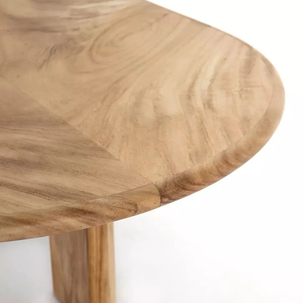 The finish depth is achieved through a multi-step staining process that highlights the 3D texture of the wood fibers. This creates a tactile experience where the material expression feels warm and organic to the touch despite its sturdy build. Light dances across the surface of the dining table, revealing subtle variations in the wood grain that ensure no two pieces are exactly alike. It is this dedication to natural detail that elevates the product from simple furniture to a work of functional art. The signature curved pillar design creates a continuous, flowing line that emphasizes the seamless luxury of the solid wood.