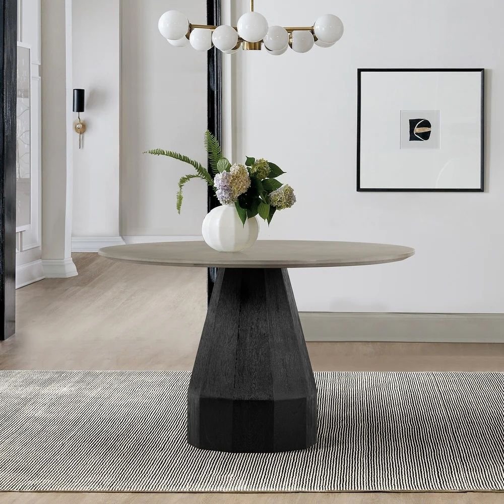 This modern dining table is designed to create a bold yet composed presence within contemporary dining interiors. Its round silhouette and sculptural pedestal base establish a strong visual anchor while maintaining a sense of balance and refinement.