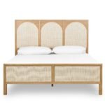 Home Bedroom Beds Solid Wood King Size Rattan Bed in Natural Finish – Arched Solace