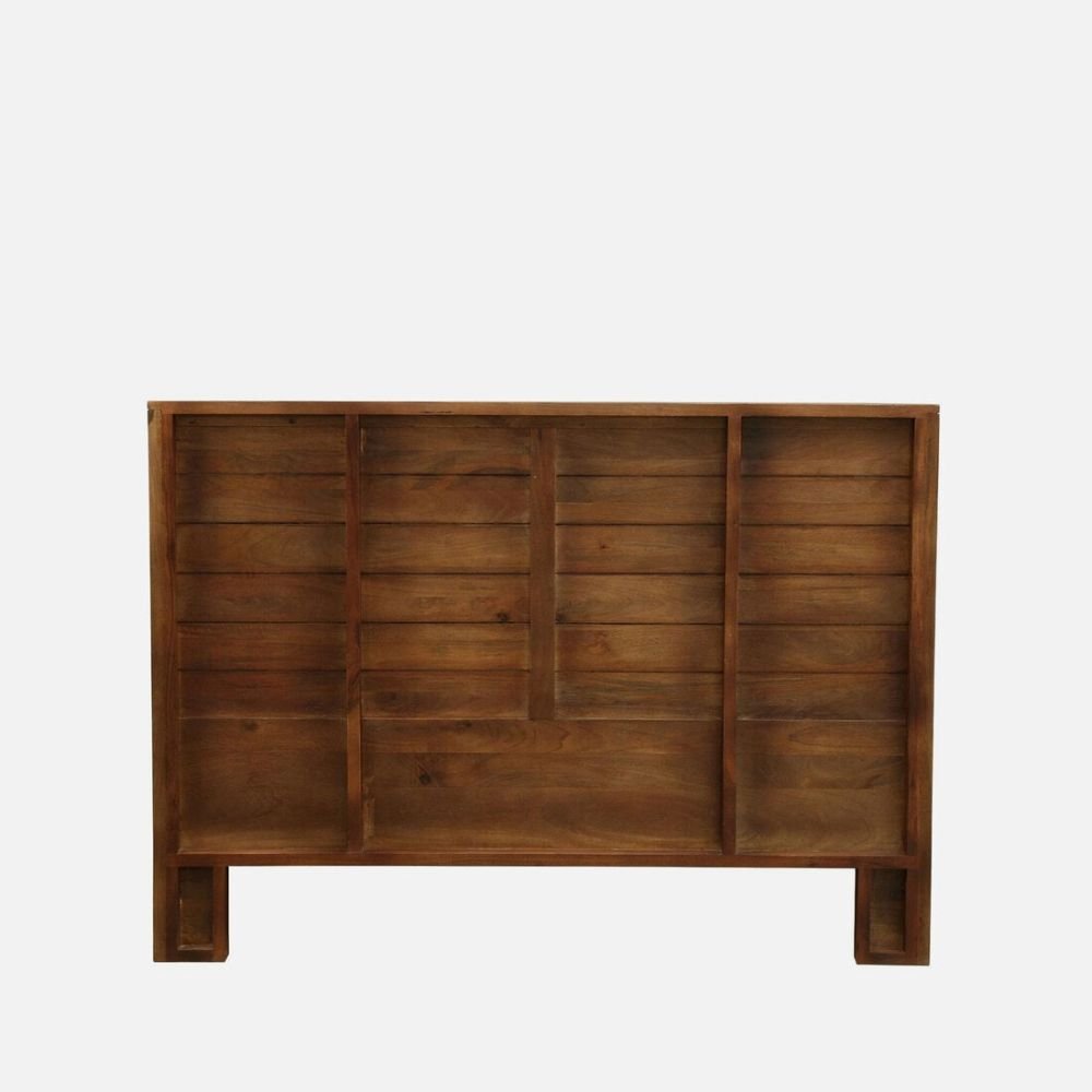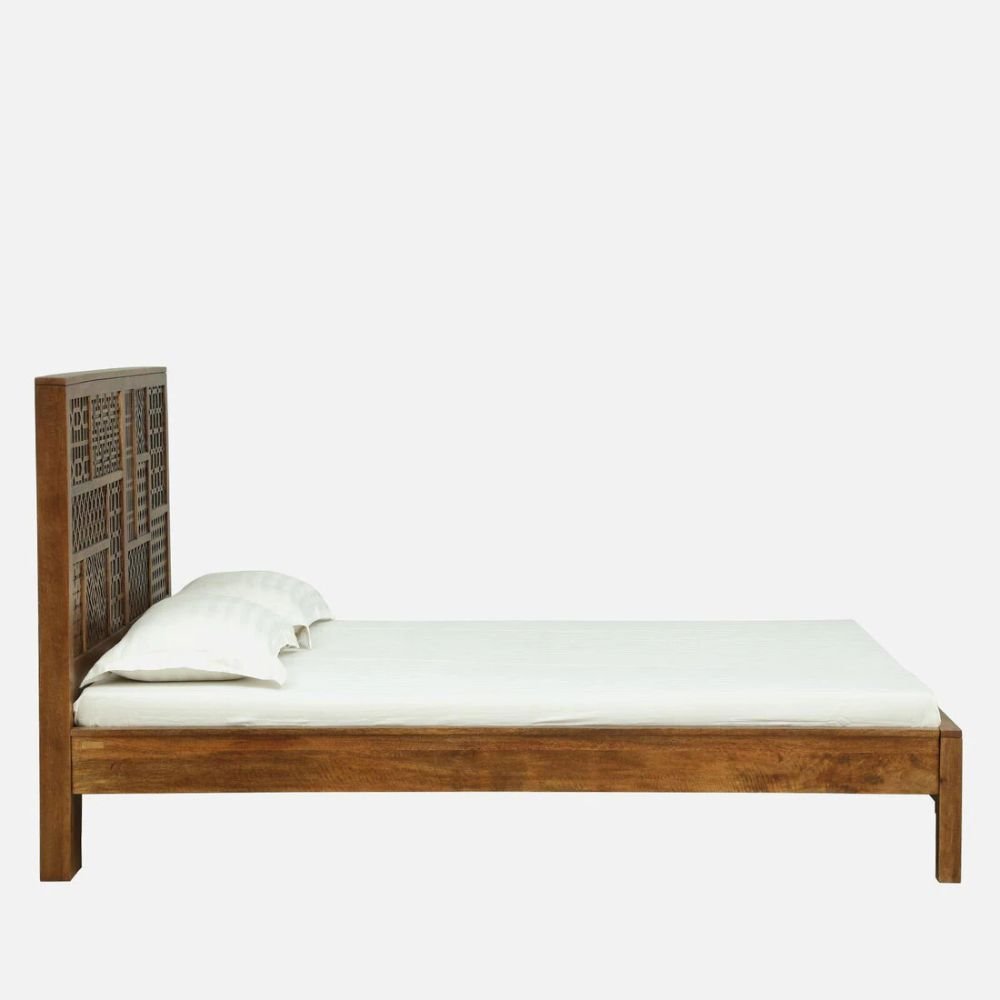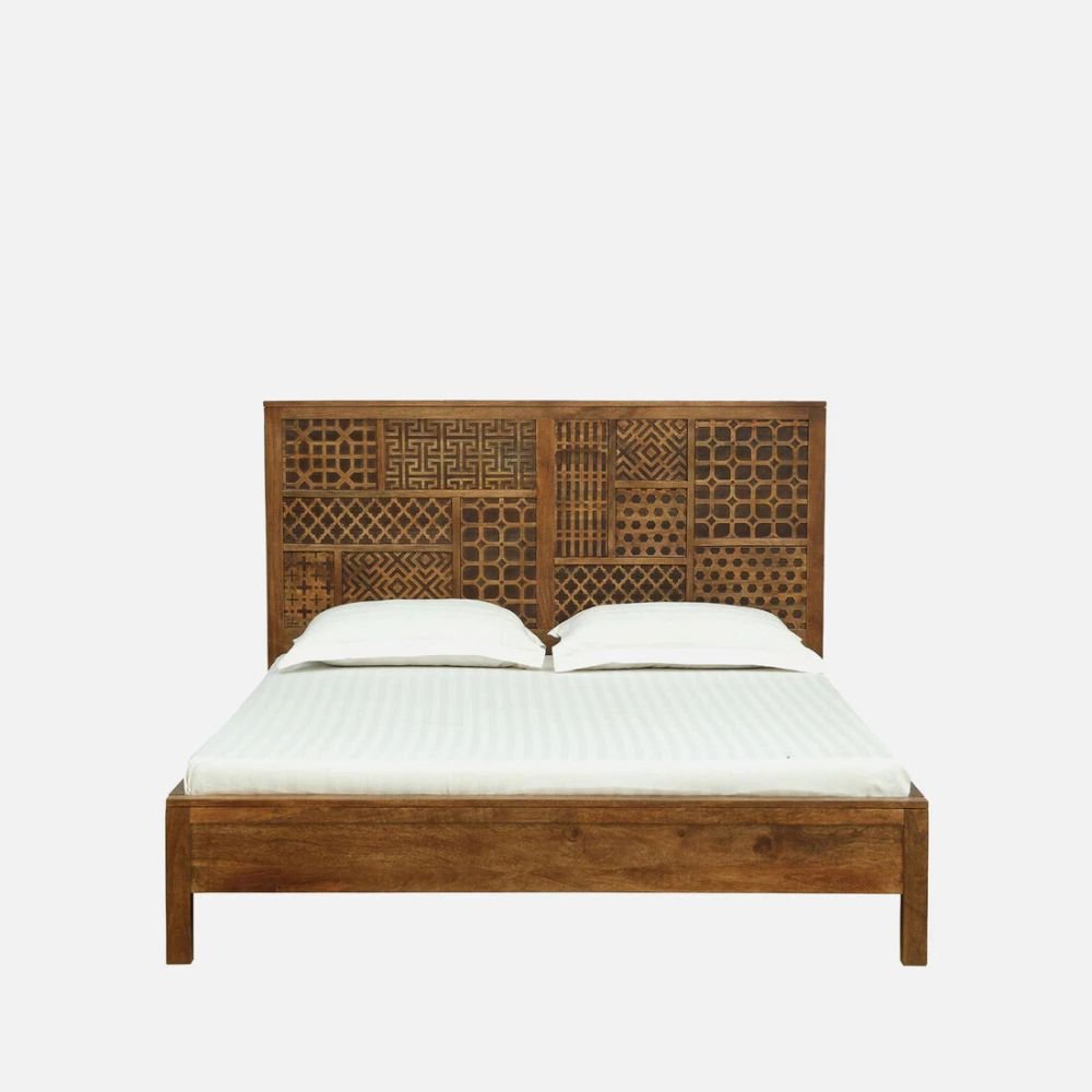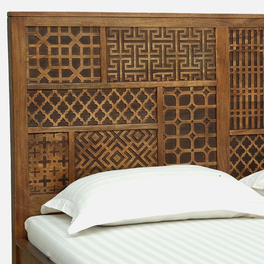Artisanal Floral Carving: Features a centrally located hand-carved motif on the headboard that adds a touch of traditional craftsmanship.