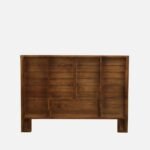 The visual appeal of this piece lies in the deep expression of its natural materials. The solid wood construction features a rich grain pattern that has been carefully preserved, allowing the authentic character of the timber to shine through the teak finish.