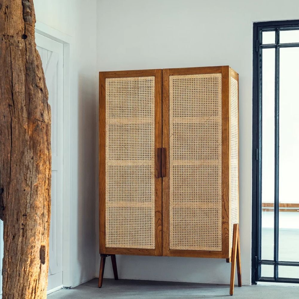 Hand-Woven Rattan: Features breathable cane door panels that add a tropical, organic texture to your interior.