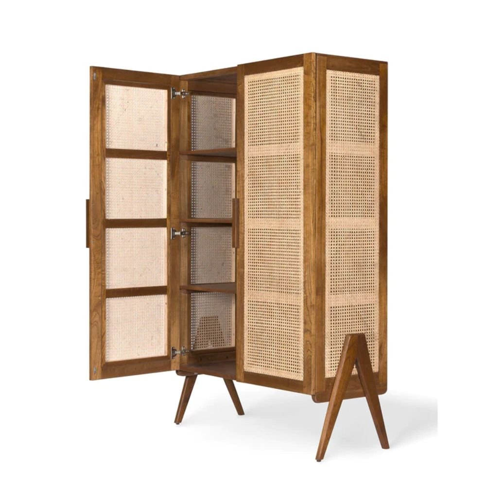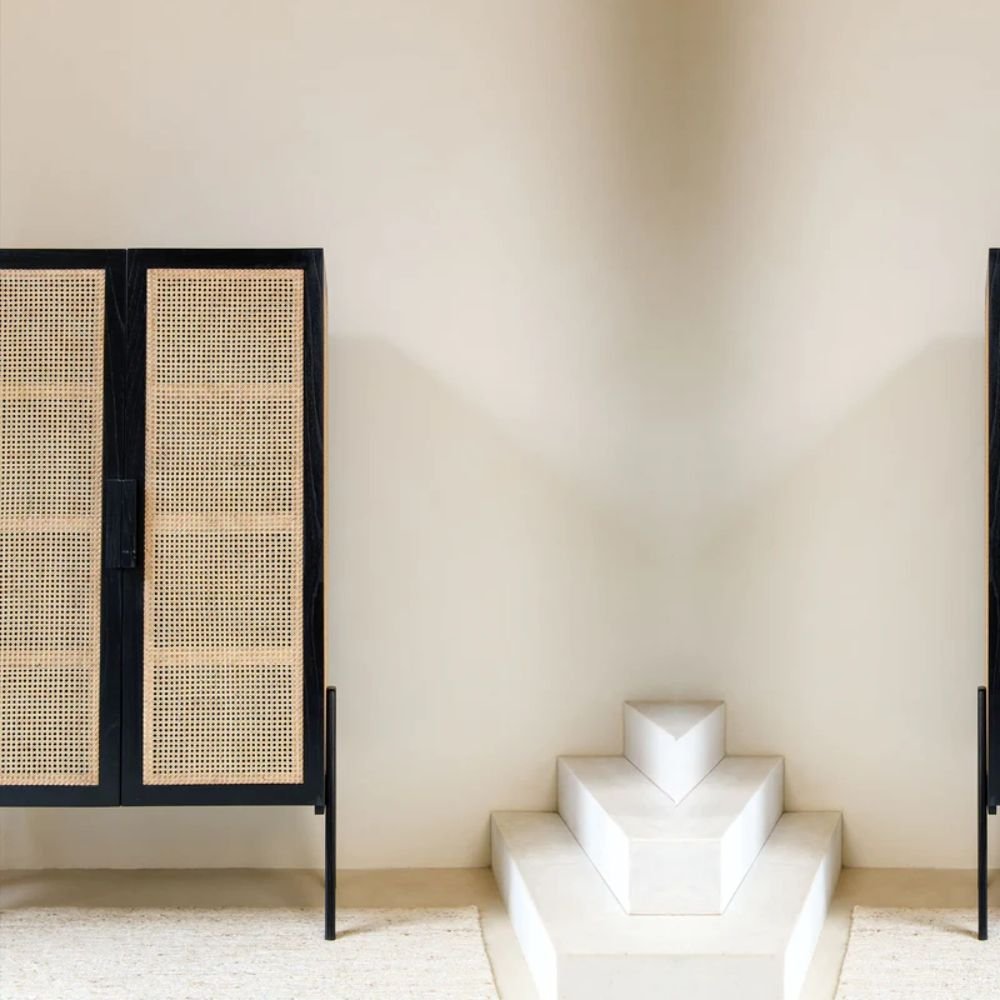 Solid Wood Storage Cabinet with 2 Cane Doors – Luna Thorne