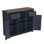 The height of 47 inches is ideal for creating a layered vignette with metallic trays and artisan decanters. By introducing the bold navy tones of this wine cabinet, you add a layer of sophistication that feels both grounded and airy. Whether styled with minimalist ceramics or lush greenery, the impact of the wood texture creates an inviting atmosphere that reflects a high standard of living and a keen eye for contemporary design. The central bottle display allows for dynamic decor configurations, making the piece a versatile asset as your personal style evolves over time.