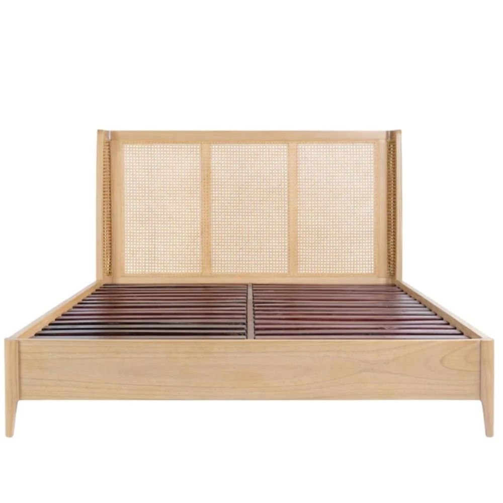 Solid Wood Bed with Wingback Cane Headboard – Koda Vibe