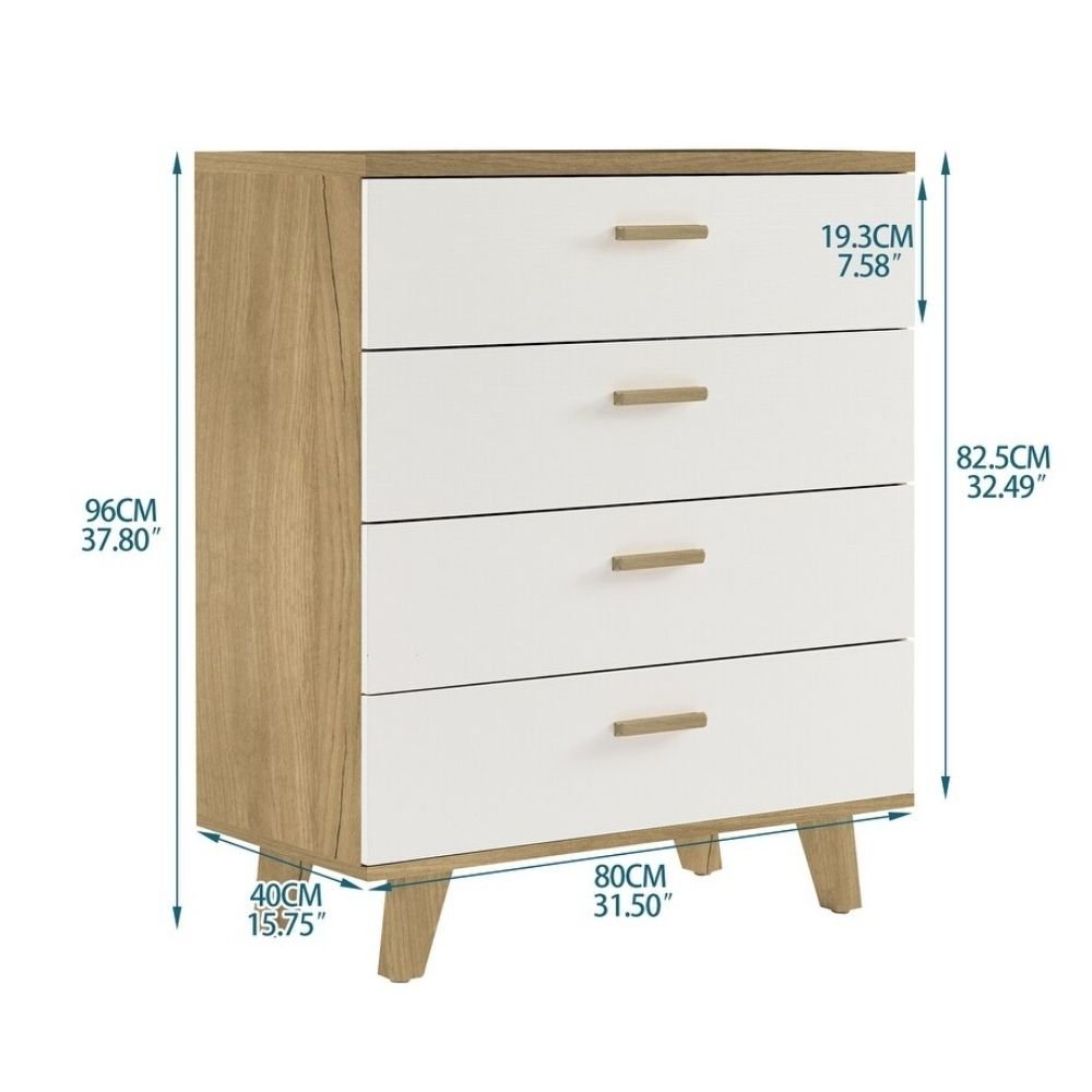 Modern oak and white 4-drawer chest with minimalist legs and handles for refined bedroom and hallway storage – Modera Furnish