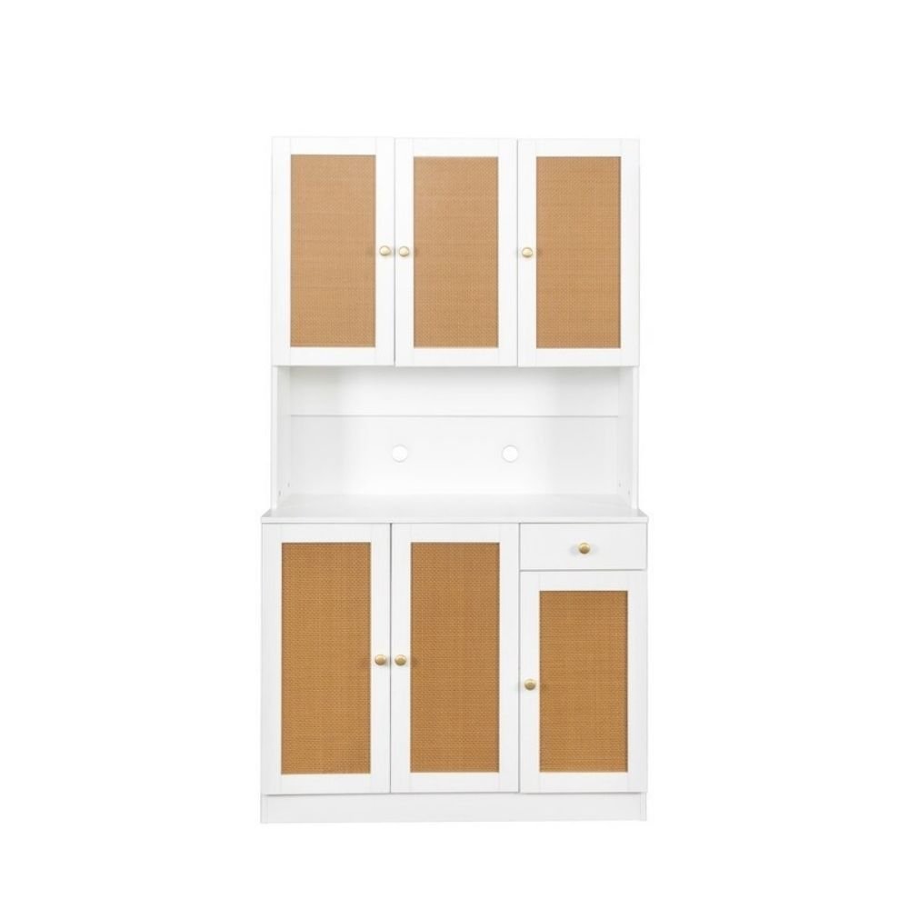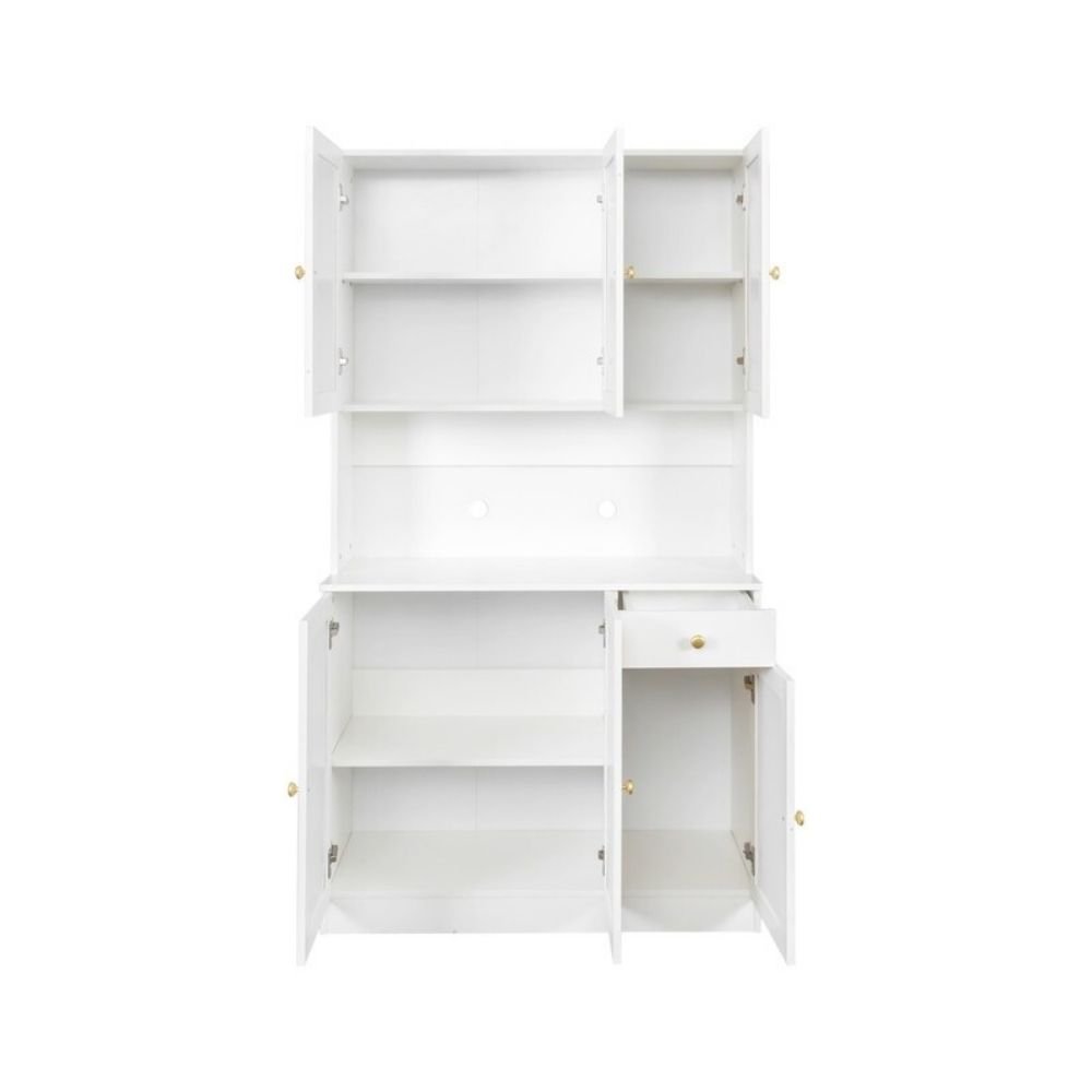 White solid wood 6-door modern closet with drawer and open shelf for versatile storage – Modera Furnish