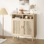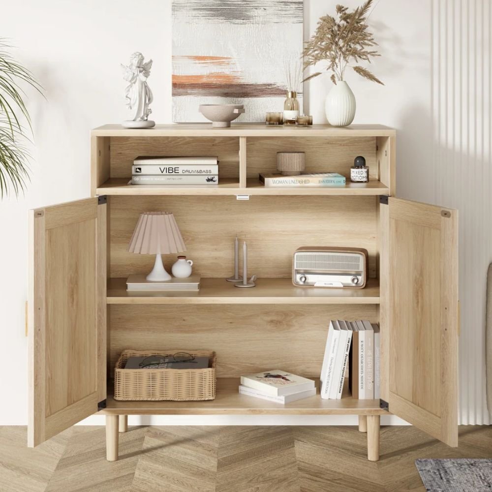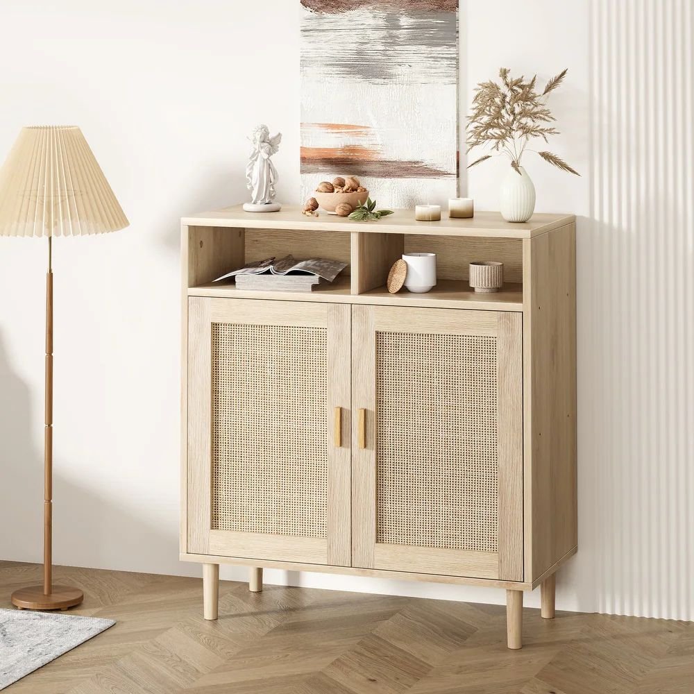 The height of 36.2 inches is ideal for creating a layered vignette with stylish table lamps and curated greenery. By introducing the warm natural wood and cane tones of this storage cabinet, you add a layer of sophistication that feels both grounded and modern. Whether styled with minimalist ceramics or textured baskets, the impact of the woven texture reflects a high standard of living. The dual-door design allows for a clutter-free environment, making the piece a versatile asset as your personal style evolves over time.