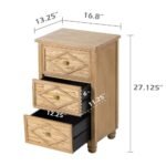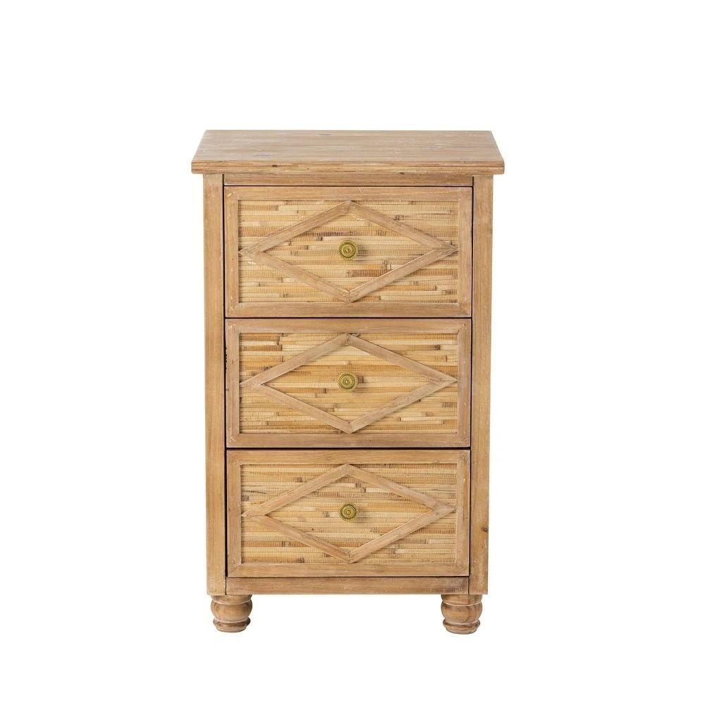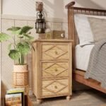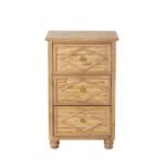 Solid wood 3-drawer tropical bedside table with diamond carvings and bun feet in natural finish - Modera Furnish