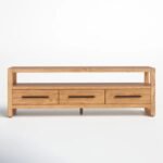 Built entirely from solid wood, this TV unit reflects a restrained design approach where function leads form. The horizontal silhouette keeps the room visually open while allowing the unit to sit comfortably beneath wall-mounted or freestanding screens. The natural wood grain finish introduces warmth without overpowering the setting, making the piece adaptable across evolving interior styles. Designed for daily use, this TV unit integrates storage and surface space into a single, unified structure.