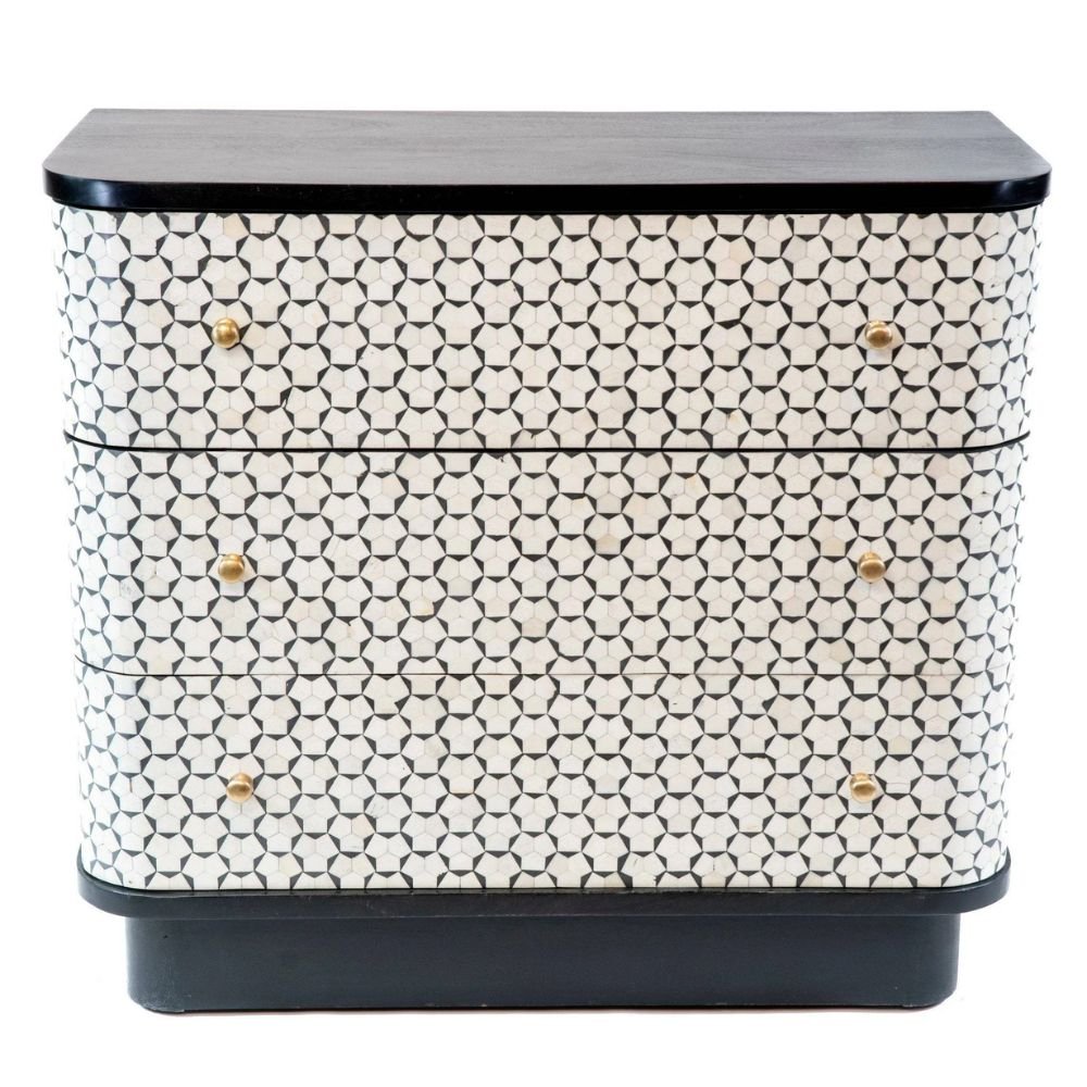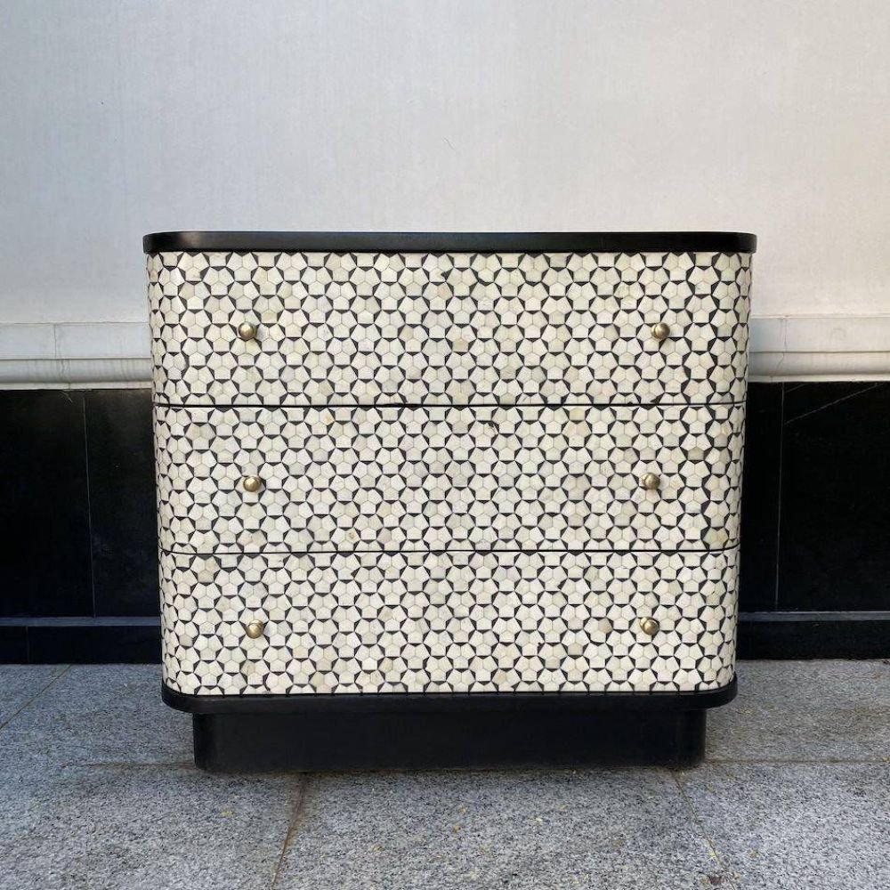 Udaipuri Bone Inlay 3 Drawer Chest Black