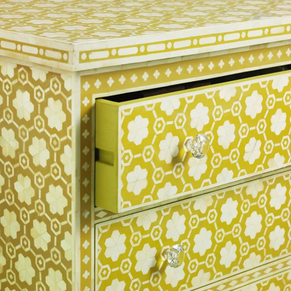 Home Collections Udaipuri Bone Inlay Chest Of 3 Drawer Flower Design Yellow