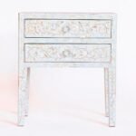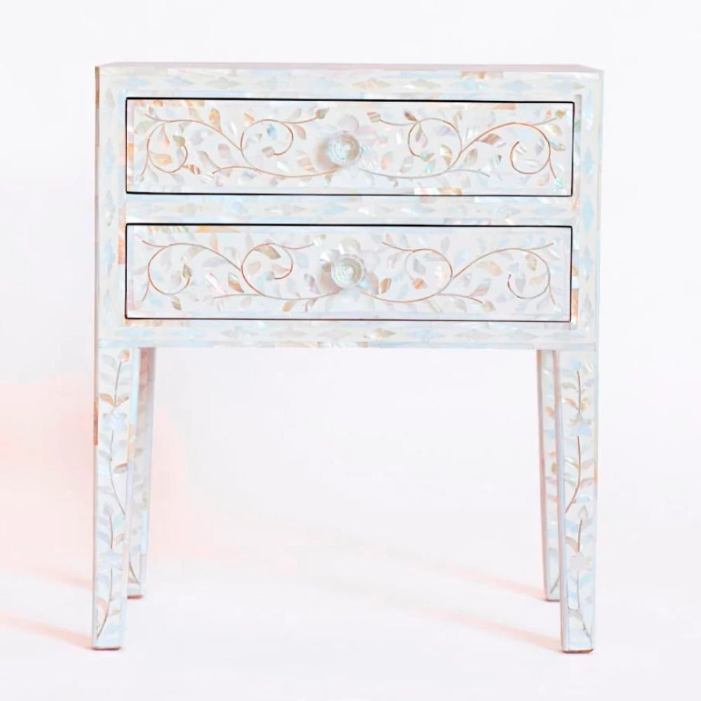 Udaipuri Mother Of Pearl 2 Drawer Bedside Table Long Leg White