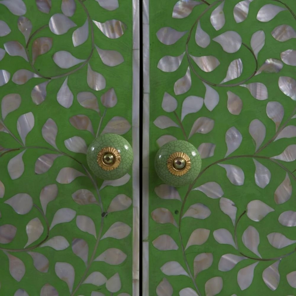 Udaipuri Mother Of Pearl Armoire Green Wardrobe