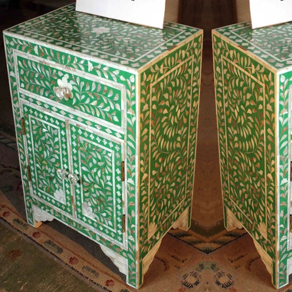 Udaipuri Mother Of Pearl Floral 1Drawer 2Door Green Bedside Table