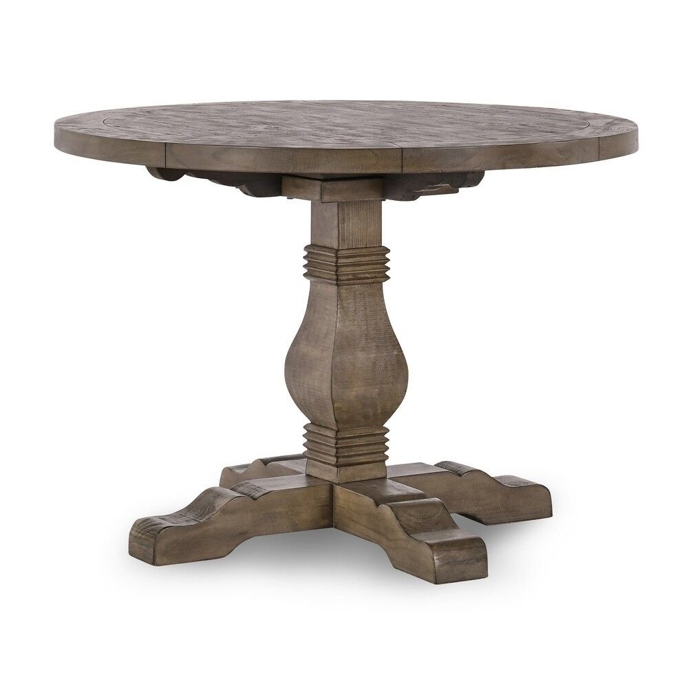 Home Dining & Kitchen Dining tables Farmhouse Dining Table – Solid Wood Round Pedestal in Weathered Brown