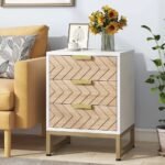 The height of 23.62 inches is ideal for creating a layered vignette with stylish table lamps and curated greenery. By introducing the crisp white and gold tones of this bedside table, you add a layer of sophistication that feels both grounded and modern. Whether styled with minimalist ceramics or textured bedding, the impact of the chevron texture reflects a high standard of living. The triple-drawer design allows for a clutter-free environment, making the piece a versatile asset as your personal style evolves over time.
